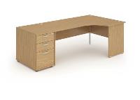 Impulse contract workstation | 25mm tops | Desk and pedestal combined | Heat resistant Oak melamine finish | 18mm modesty panel | 2mm protective abs e