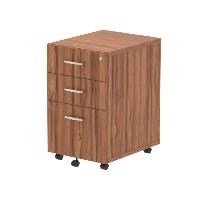 Impulse under desk pedestal | 25mm top | Full 18mm back board | 2mm abs protective edges | Steel handles | Solid box drawer construction | Fits A4 or foolscap filing | Smooth running castors for mobility | Steel to steel fixings | Lockable drawers | Heat resistant Walnut melamine finish | Suitable for Impulse and Air Height Adjustable Desking only
