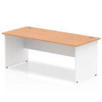 Impulse contract 1800 wide desk | 25mm tops | Heat resistant oak/white melamine finish | 18mm modesty panel | 2mm protective abs edging | Contrasting